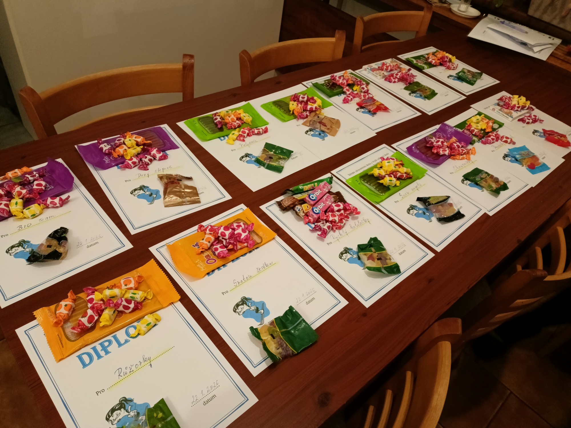 Na poslední dva lyžařské dny nám stále svítilo sluníčko, a tak speciální choreografie na sněhu se nám skvěle vydařili a všichni jsme byli odměněni nejen dobrým pocitem, ale i sladkými drobnostmi.
