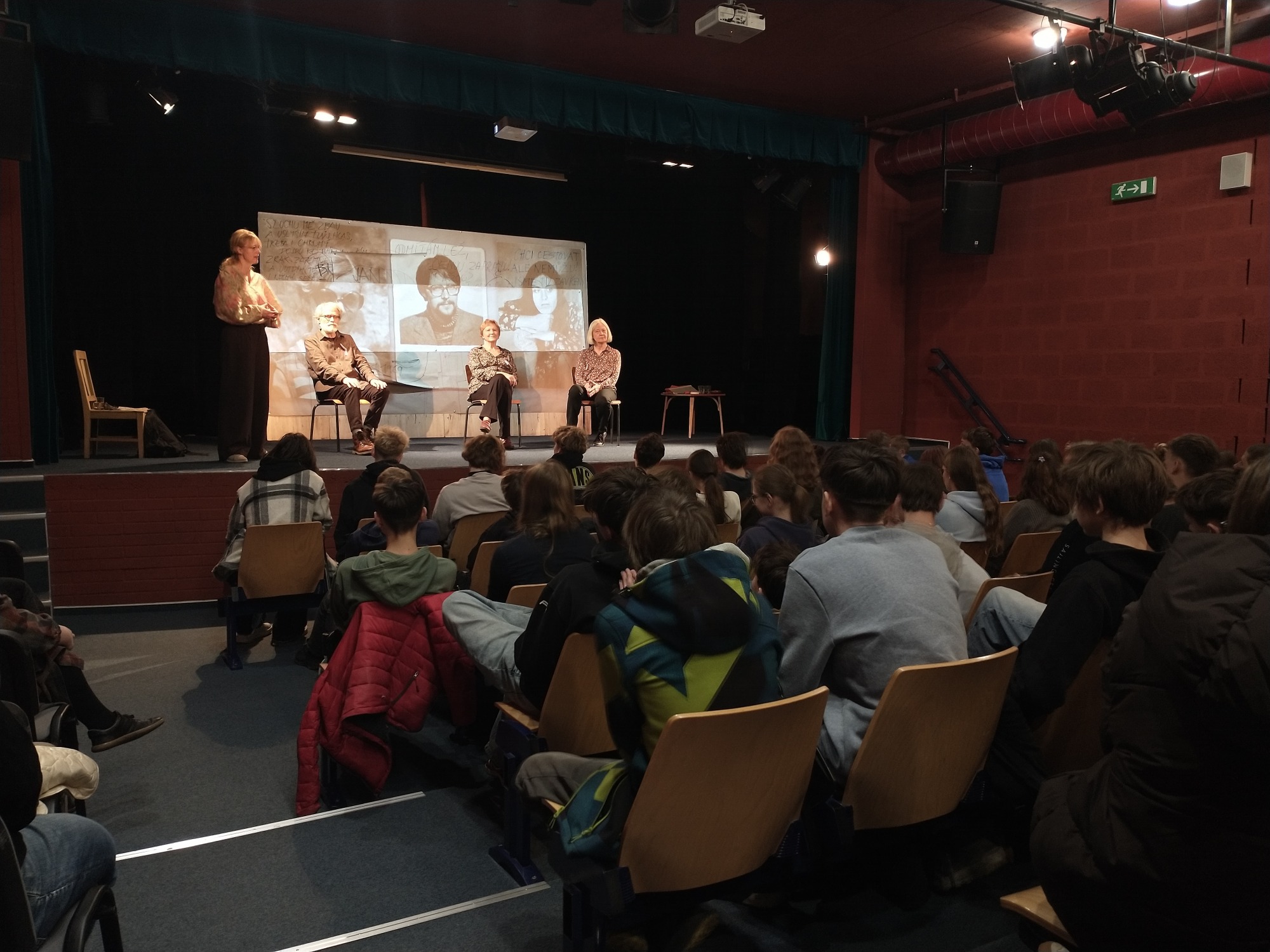 V úterý 18. 11. 2025 se žáci 4. A a 4. L vypravili na dokumentární inscenaci Tanky na plovárně, ve které tři pamětníci událostí srpna 1968 vyprávějí své příběhy. Nejdříve se velmi podobají svým divákům líčením starostí z let dospívání, plány do života odvážnými díky pražskému jaru, ale pak se ozve rachotění tanků a letadel, a sny se rozplynou. Individuální příběhy spojují historické události, výstřižky z novin a filmové záběry. A tak s námi Jindřich Synek sdílí, jaká atmosféra byla na pohřbu Jana Palacha, nebo jak Renata Válová vnímala podepsání Moskevského protokolu. Divadlo Tisícihran chce tímto způsobem předávat živou historii.