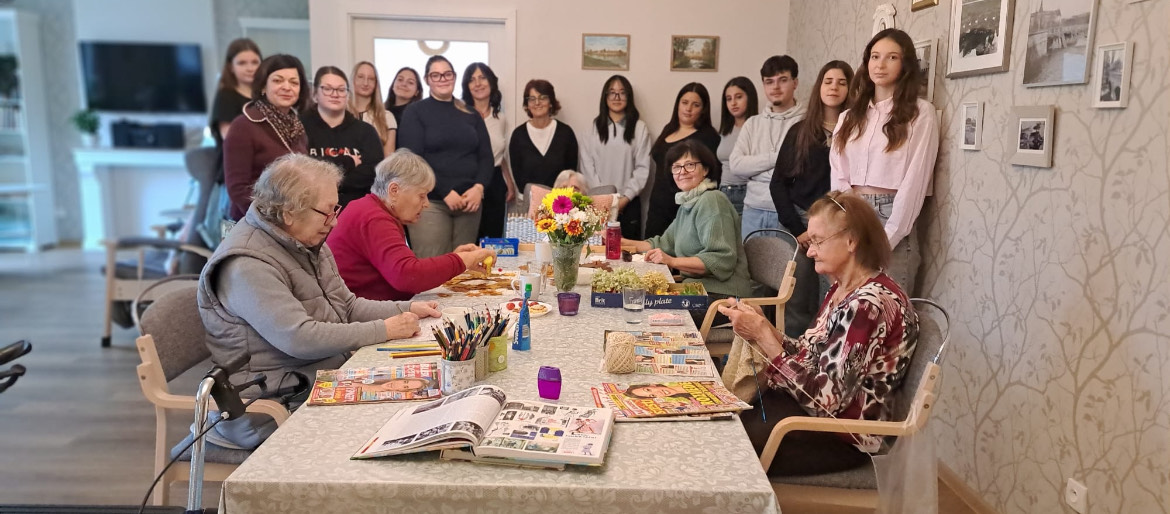Dne 16.10. studenti ráno spolu s některými studentkami ze třídy 3.L navštívili centrum chráněného bydlení a denního stacionáře pro seniory Labské terasy v Nymburce. Zde je čekala komentovaná prohlídka v angličtině, po které následovalo spoustu dalších zajímavých dotazů od studentů i učitelek. Dále si dali menší rozchod na oběd a poté vyrazili na další anglickou prezentaci tentokrát od organizace Respondeo Nymburk. Jako poslední aktivitu z celého nabytého týdne se studentky ze 3.L a skupina našich italských studentů sešli na velice příjemném posezení s občerstvením.