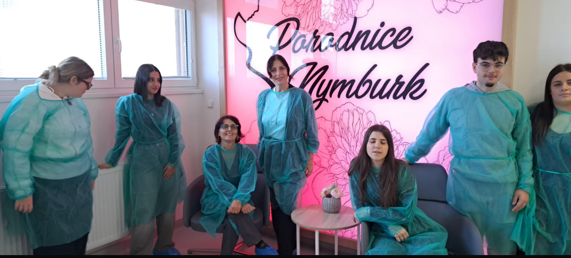 Dne 15.10. studenti hned ráno dorazili do nymburské nemocnice na prohlídku. Společně se studenty nemocnici navštívily studentky z 3.L a paní učitelka Sitná. Navštívili oddělení chirurgie, urgentní péče, porodnictví a pooperační péče. Po všech odděleních je prováděla hlavní setra nymburské nemocnice a vrchní sestra náležitého oddělení, kterým ještě jednou za prohlídku moc děkujeme. Studentky z 3.L a paní učitelka Sitná překládaly jejich výklady do angličtiny a odvedly skvělou práci. Po návštěvě nemocnice se studenti vydali do města Poděbrady, kde navštívili centrum pro rodiny pečující o své nemocné příbuzné. Společně s nimi zde opět byly studentky z 3.L a paní učitelka Sitná, které opět překládaly výklad do angličtiny a poté jim udělaly náležitou prohlídku po Poděbradech.