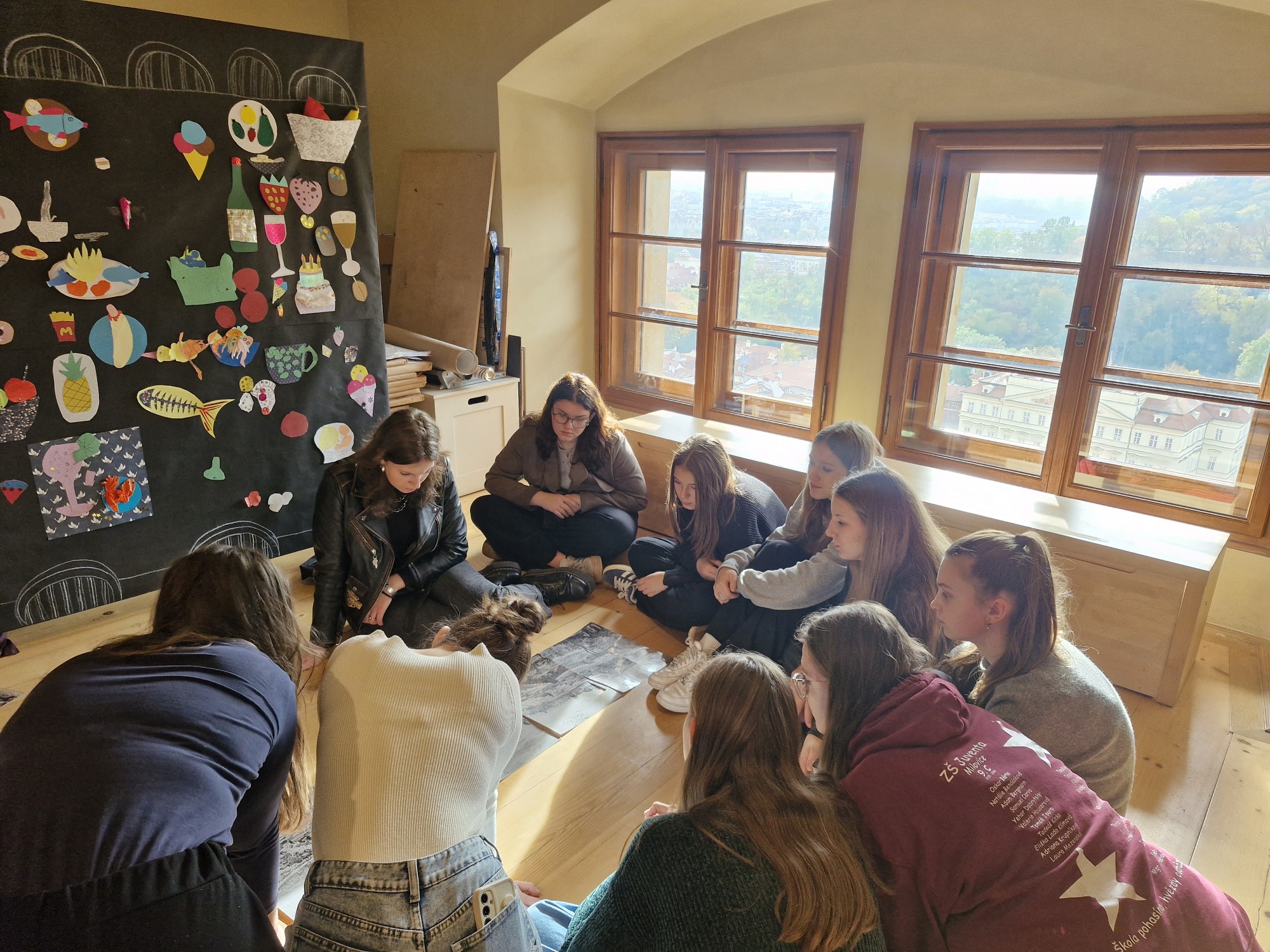 Ve čtvrtek 23. října 2025 se nechaly žákyně 2. A vtáhnout do okouzlující atmosféry světa Rudolfa II. v renesančním Schwarzenberském paláci na Pražském hradě. Po úvodní přednášce o rodinných poměrech mladého císaře, která takřka připomínala psychologickou kazuistiku, nás nechali nahlédnout do luxusu a nádhery Rudolfových sbírek. Následně jsme v ateliéru společně vytvořily bestiář plný fantaskních stvoření.