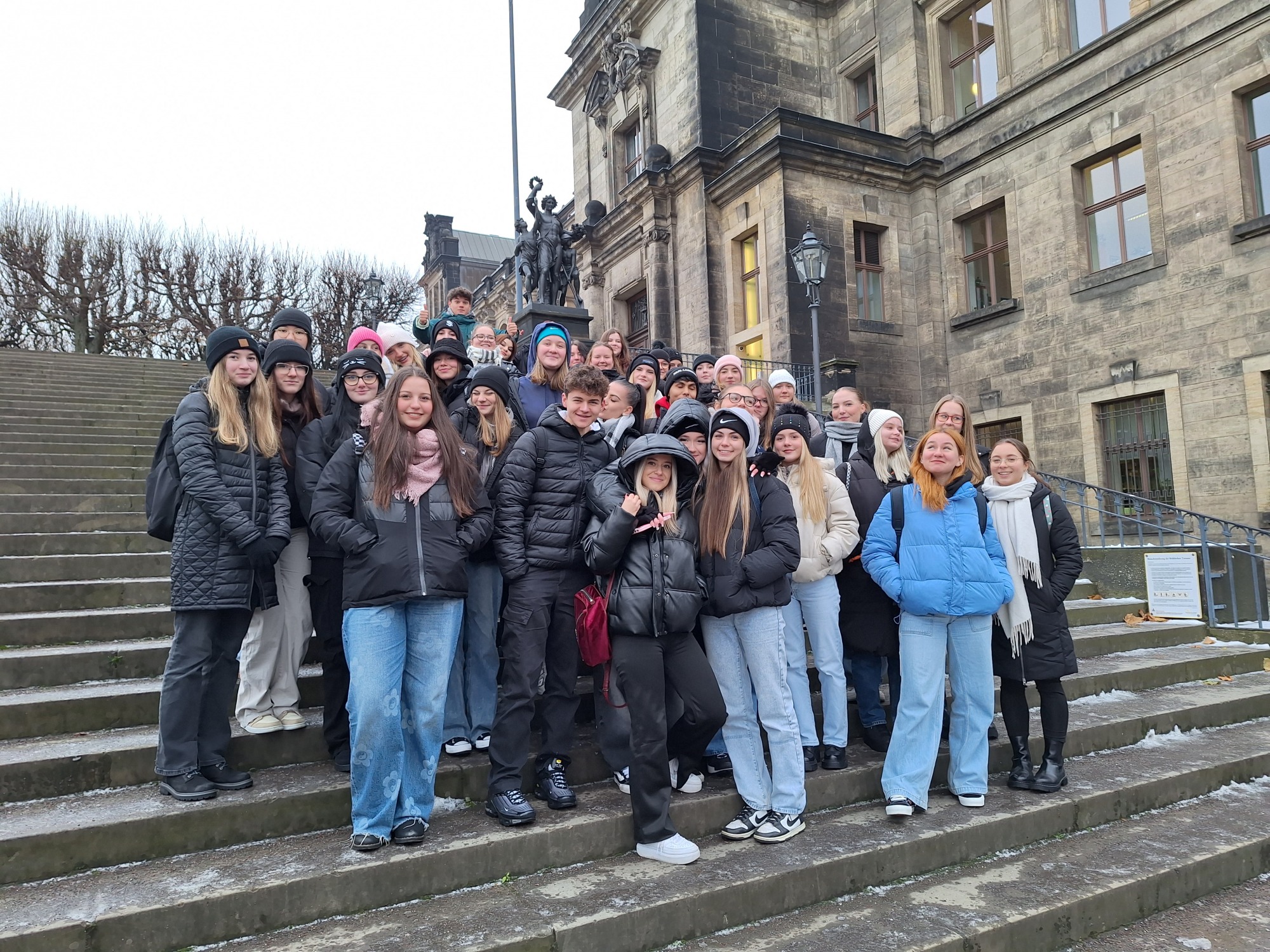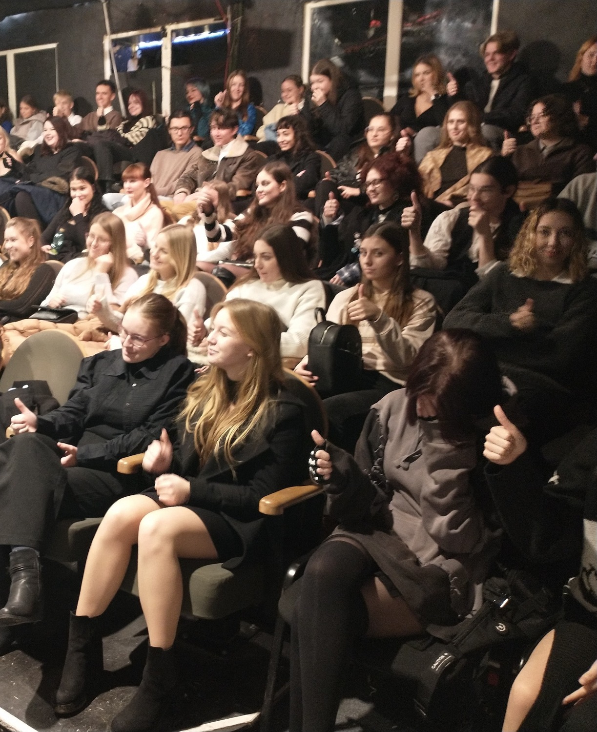 Ve středu 29. listopadu 2023 žáci 3. A a 4. Z navštívili představení Zločin a trest, aby mohli porozumět motivaci Raskolnikova k vraždě a následně se nechali vtáhnout do mučivých stavů jeho výčitek svědomí. Nejchudší sociální vrstvu přesvědčivě dokreslovala ošuntělá scéna ruského sídliště skrápěná vodou i vodkou dávkovanou rovnou ve čtyřlitrových zavařovacích sklenicích.