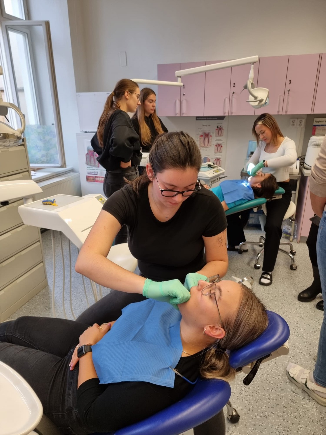 Studenti třetího ročníku oboru Diplomovaná dentální hygienistka se tento týden zúčastnili přednášky na téma Ultimátní bělení zubů od společnosti Purewhitening. Ve školní ordinaci si poslechli dlouholeté zkušenosti v problematice bělení od MUDr. Zvolánka. Součástí byl i praktický workshop, kde si vyzkoušeli metodu dvojího otiskování pomocí silikonových otiskovacích hmot. Celé odpoledne bylo velmi přínosné.
