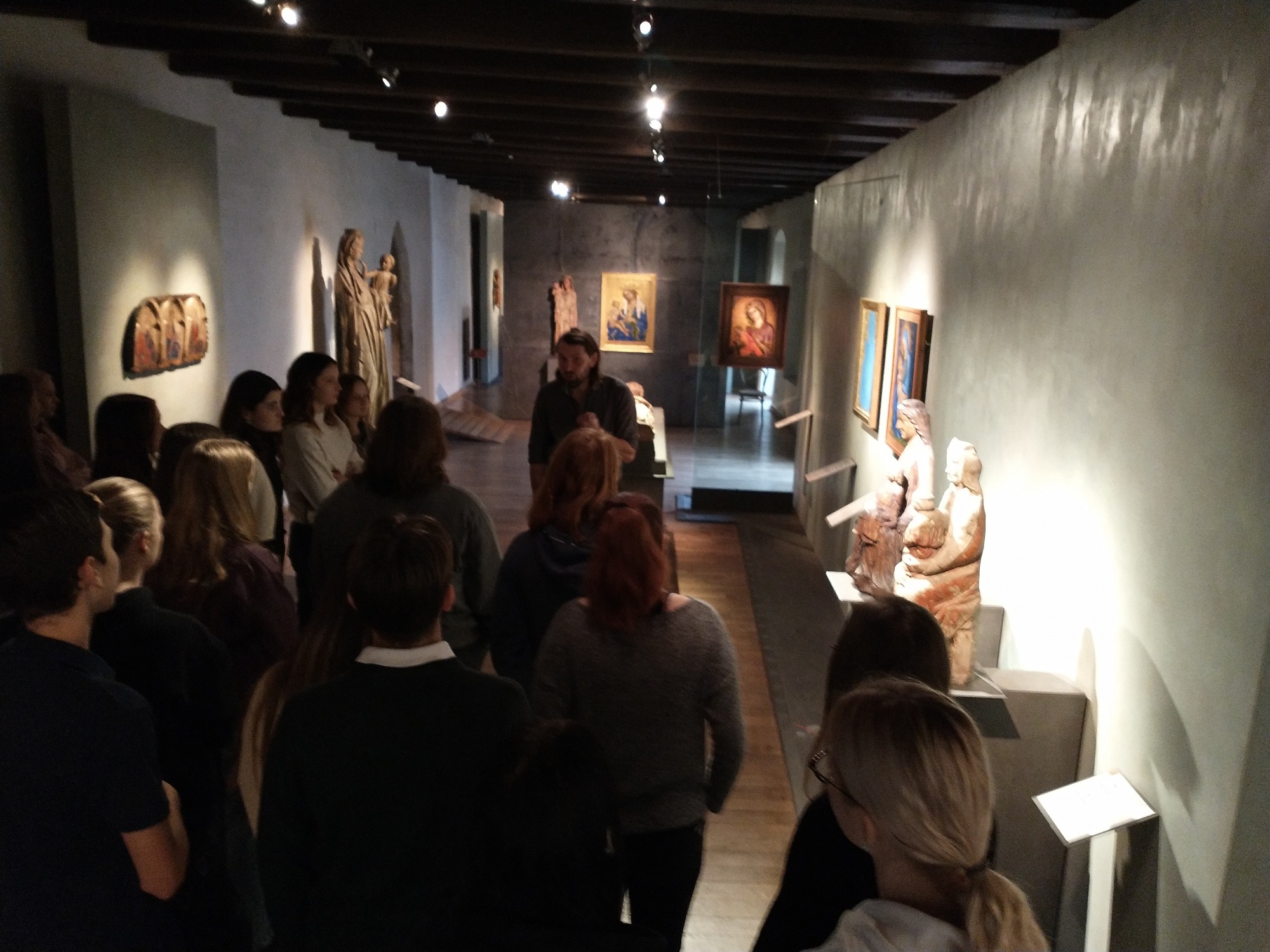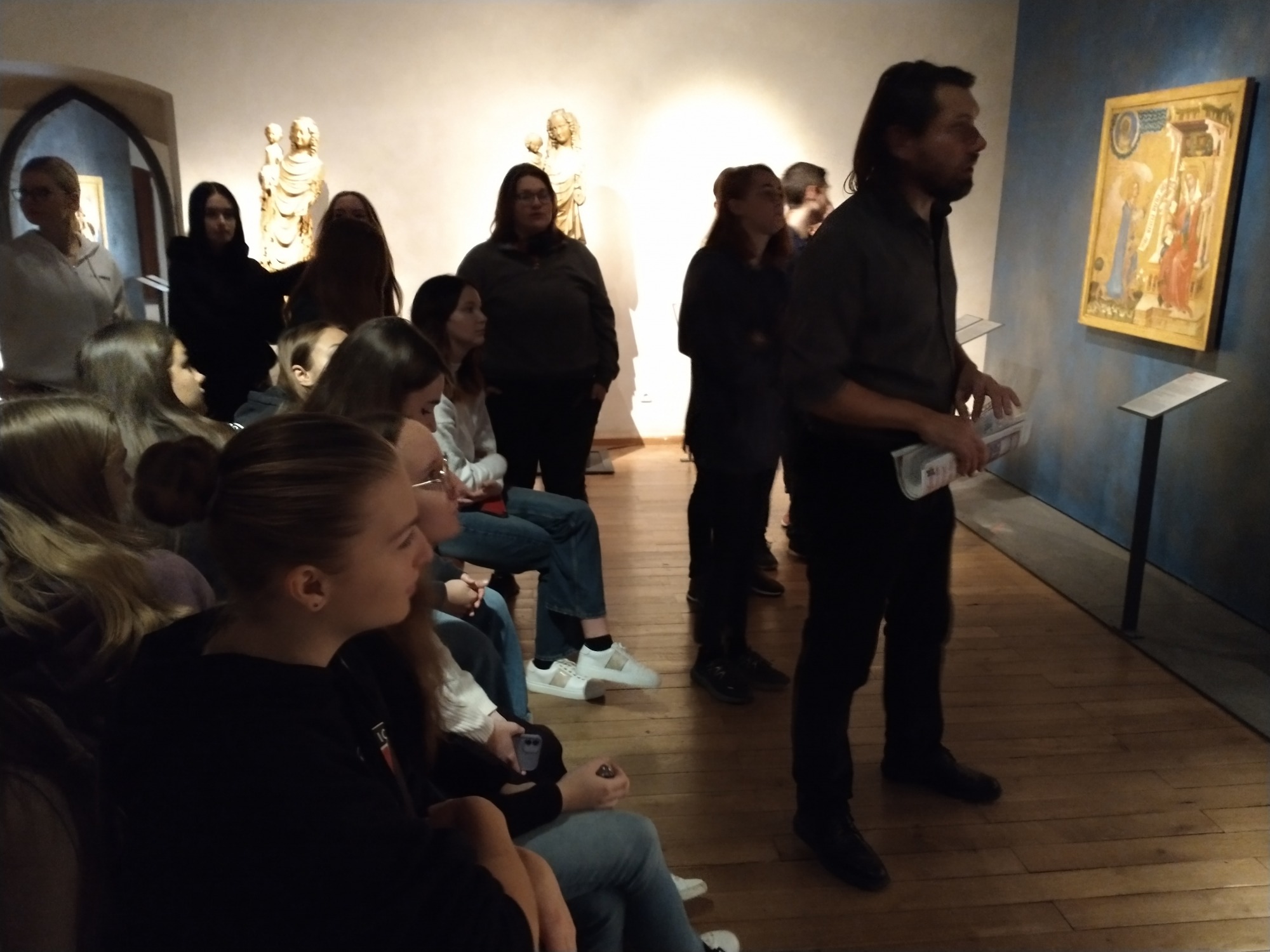 Žáci třídy 1. L měli možnost zhlédnout nejvzácnější deskové malby českého středověku, včetně originálů Mistra Theodorika, při návštěvě Anežského kláštera. Během lektorovaného programu byli pozváni do světa duchovní i světské středověké literatury. Sami pak některé ukázky z překladu Zbraslavské kroniky nebo staročeského Mastičkáře přednesli.