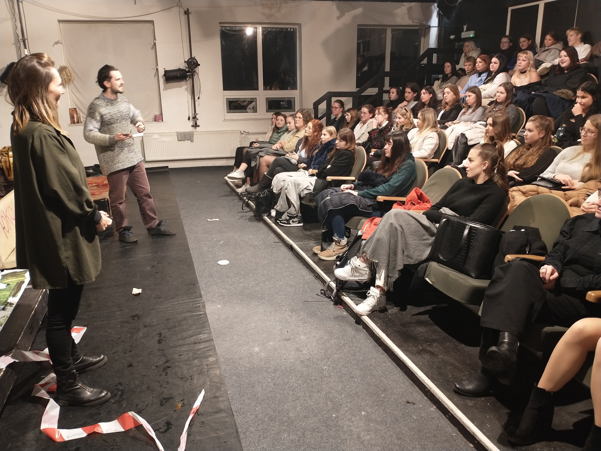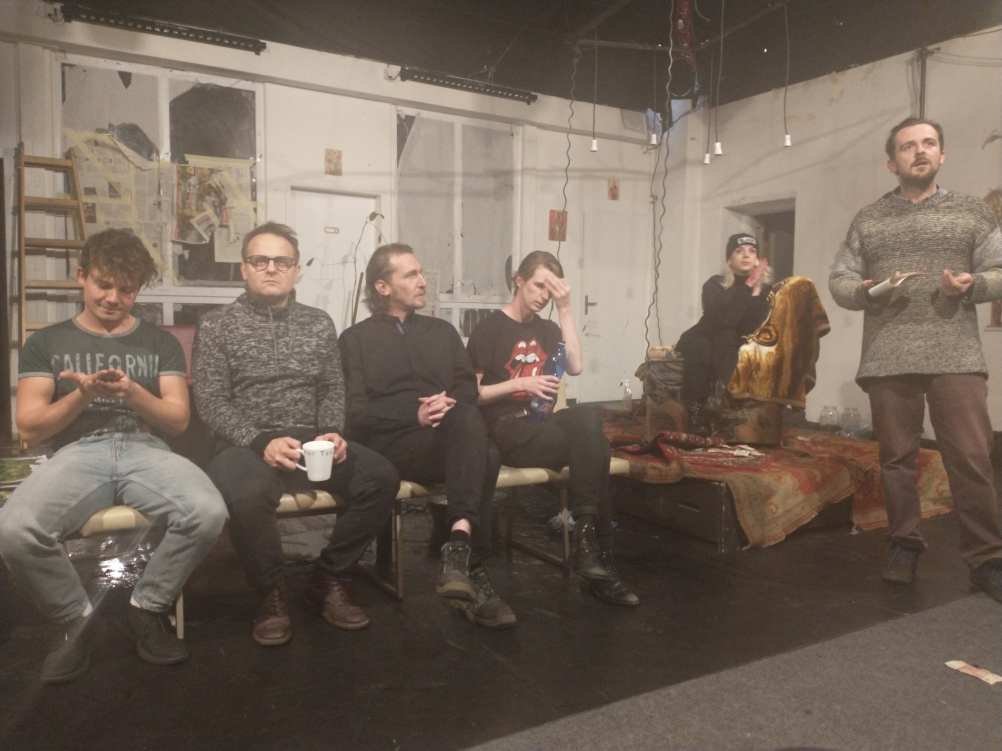 Po představení následovala beseda s herci. Na otázku Samuela Neduhy, představitele Marmeladova, zda zhlédnutí inscenace podnítilo zájem si román přečíst, se zvedl les rukou budoucích čtenářů Dostojevského.