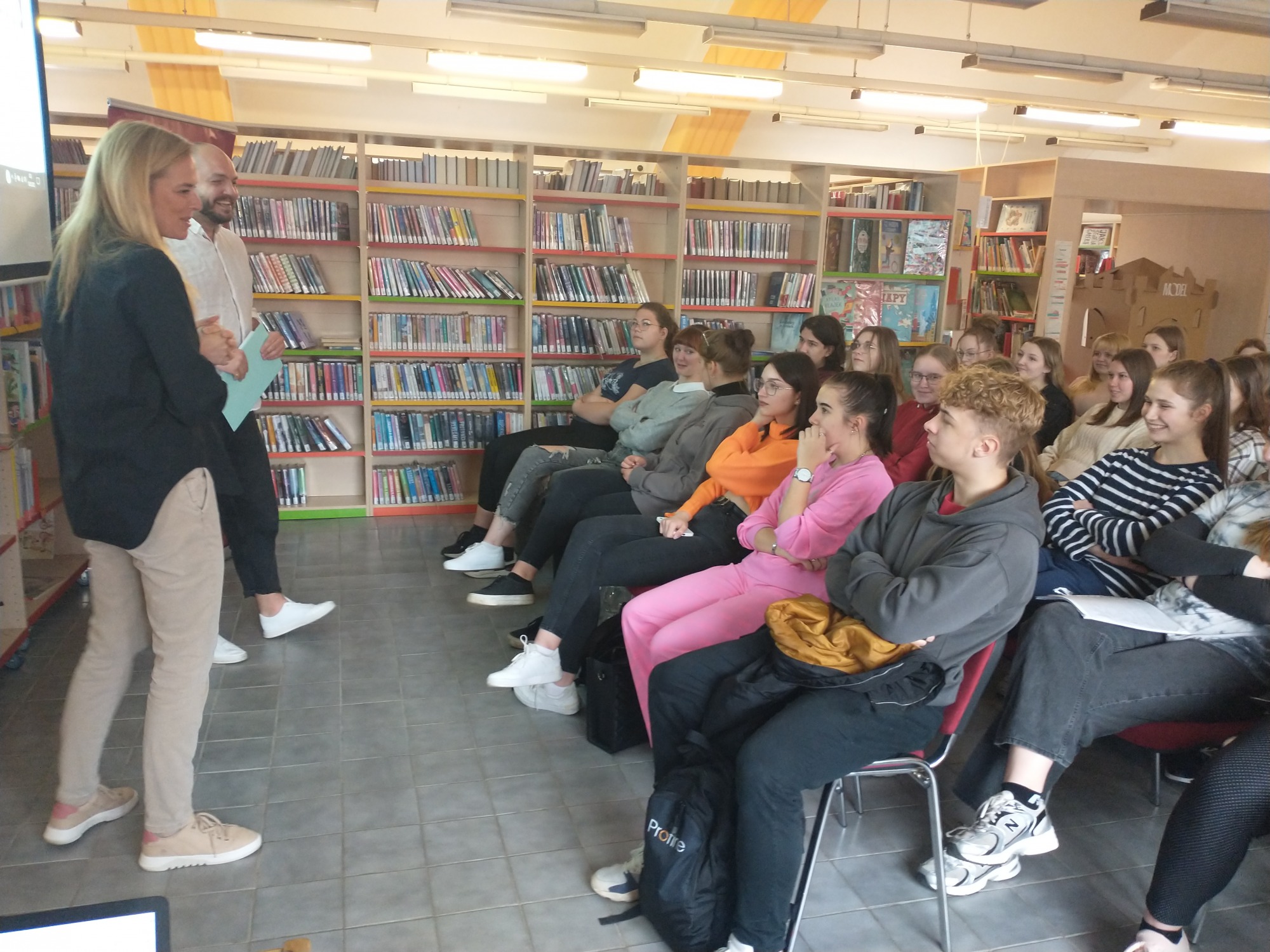 V dopoledních hodinách 18. května 2023 se studenti druhých ročníků v rozhovoru s moderátorkou Světlanou Witowskou pustili do světa mediálních obrazů, politických debat, fake news a investigativní žurnalistiky. Beseda nesla výstižný název "Pod povrch", kam jsme se opravdu mnoha ukázkami dostali. Vraceli jsme se s přáním a apelem Světlany Witowské: "Prosím přemýšlejte a vše si ověřte."