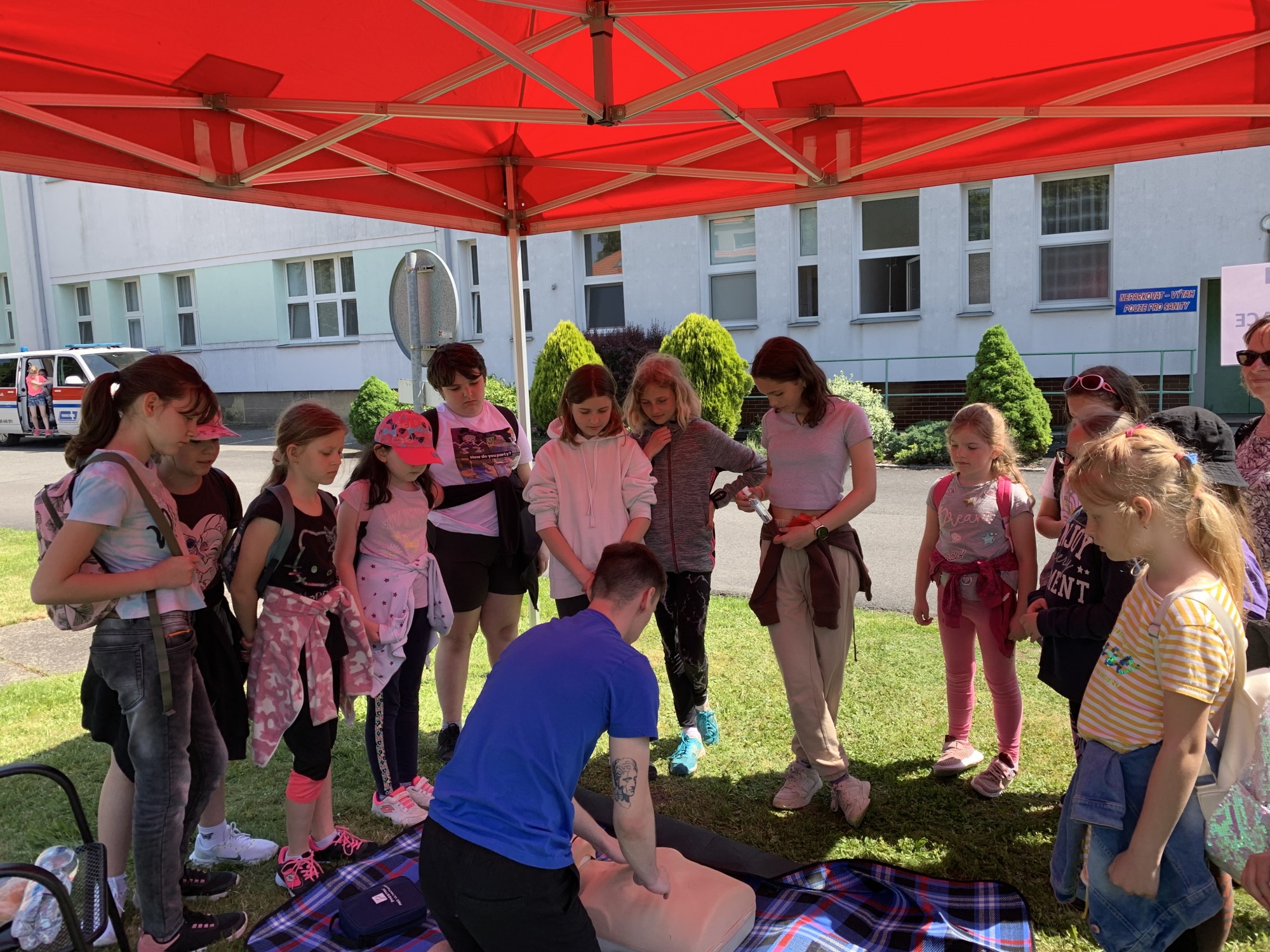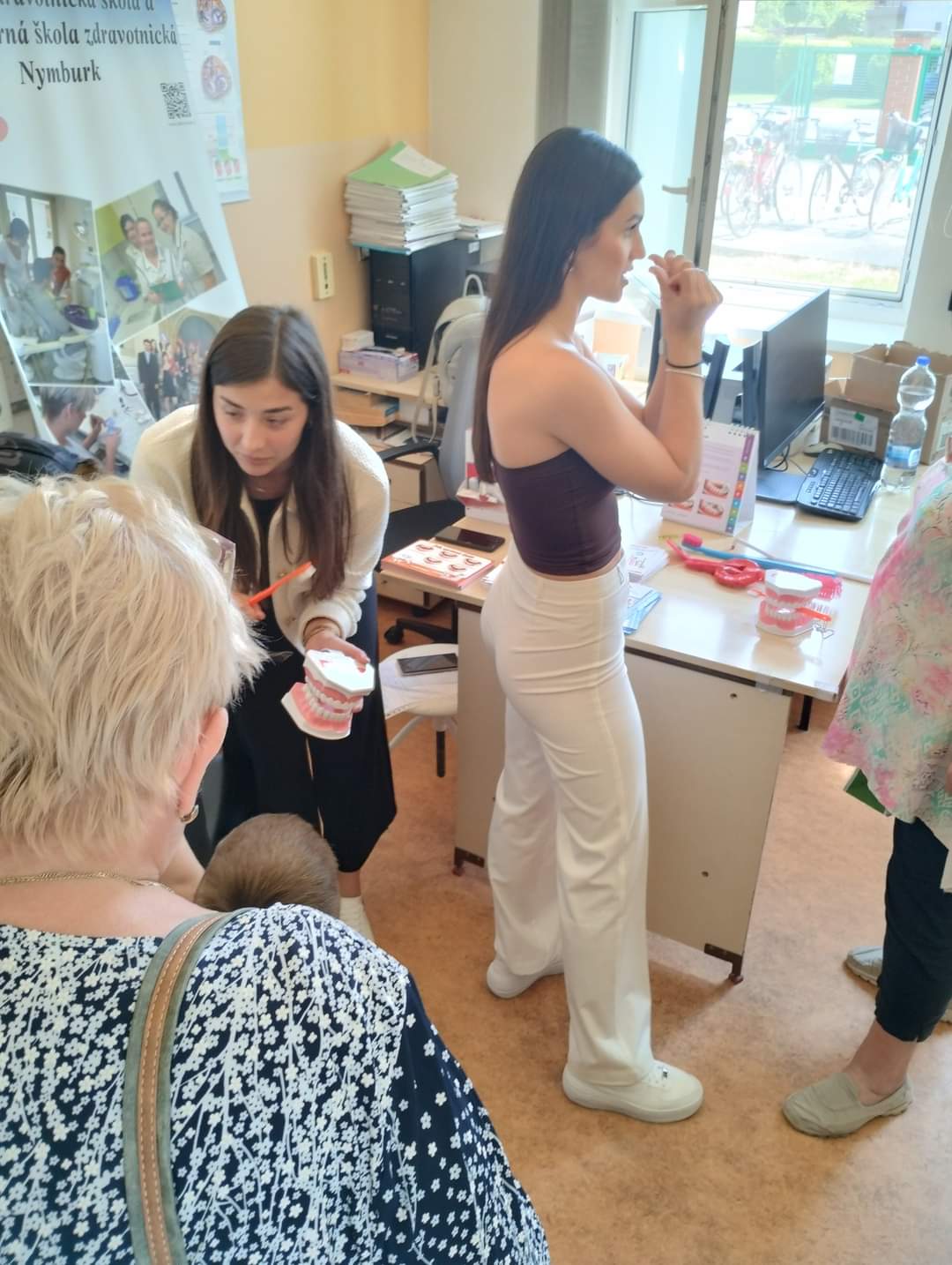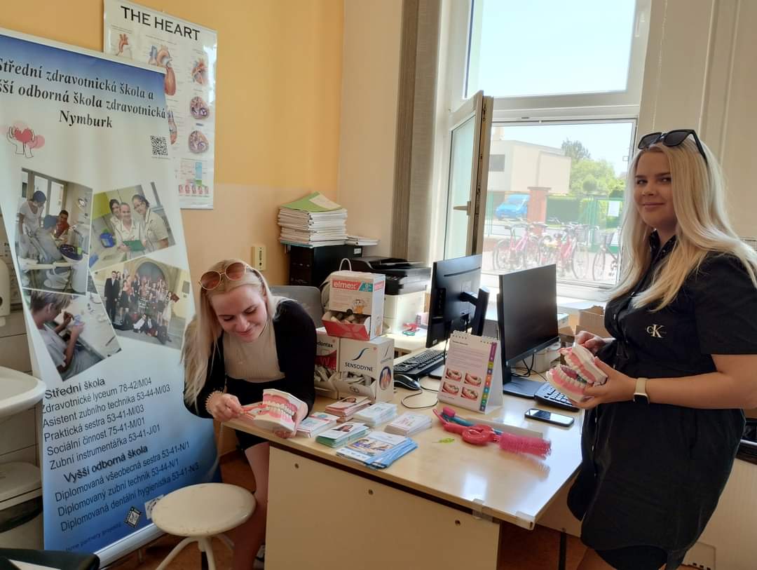 Dne 25. 5. 2023 od 13 hodin probíhal v královéměstecké nemocnici Den zdraví určený pro širokou veřejnost. Tato akce byla zaměřena na primární prevenci. Na bohatém programu jsme se podíleli i my a to hned na dvou stanovištích. Na prvním stanovišti seznamovali studenti ze třídy 2. DH návštěvníky se zásadami laické resuscitace a zároveň tyto život zachraňující úkony s návštěvníky i prakticky procvičili. Druhé stanoviště zajišťovali také studenti ze třídy 2. DH. Zde návštěvníky edukovali o správné péči o dutinu ústní a i zde nechyběl praktický nácvik. O akci byl ze strany veřejnosti opravdu velký zájem, což můžete posoudit z přiložených fotografií. Mgr. Monika Veselá