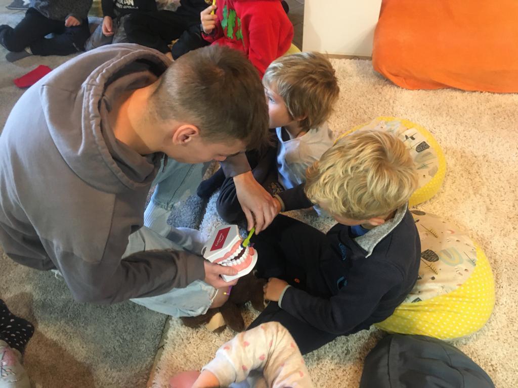 Studenti 2DH edukovali děti v rámci dentální hygieny. Naučili je, jak správně pečovat o zoubky, používat kvalitní pomůcky a prakticky je seznámili se správnou technikou čištění zoubků.