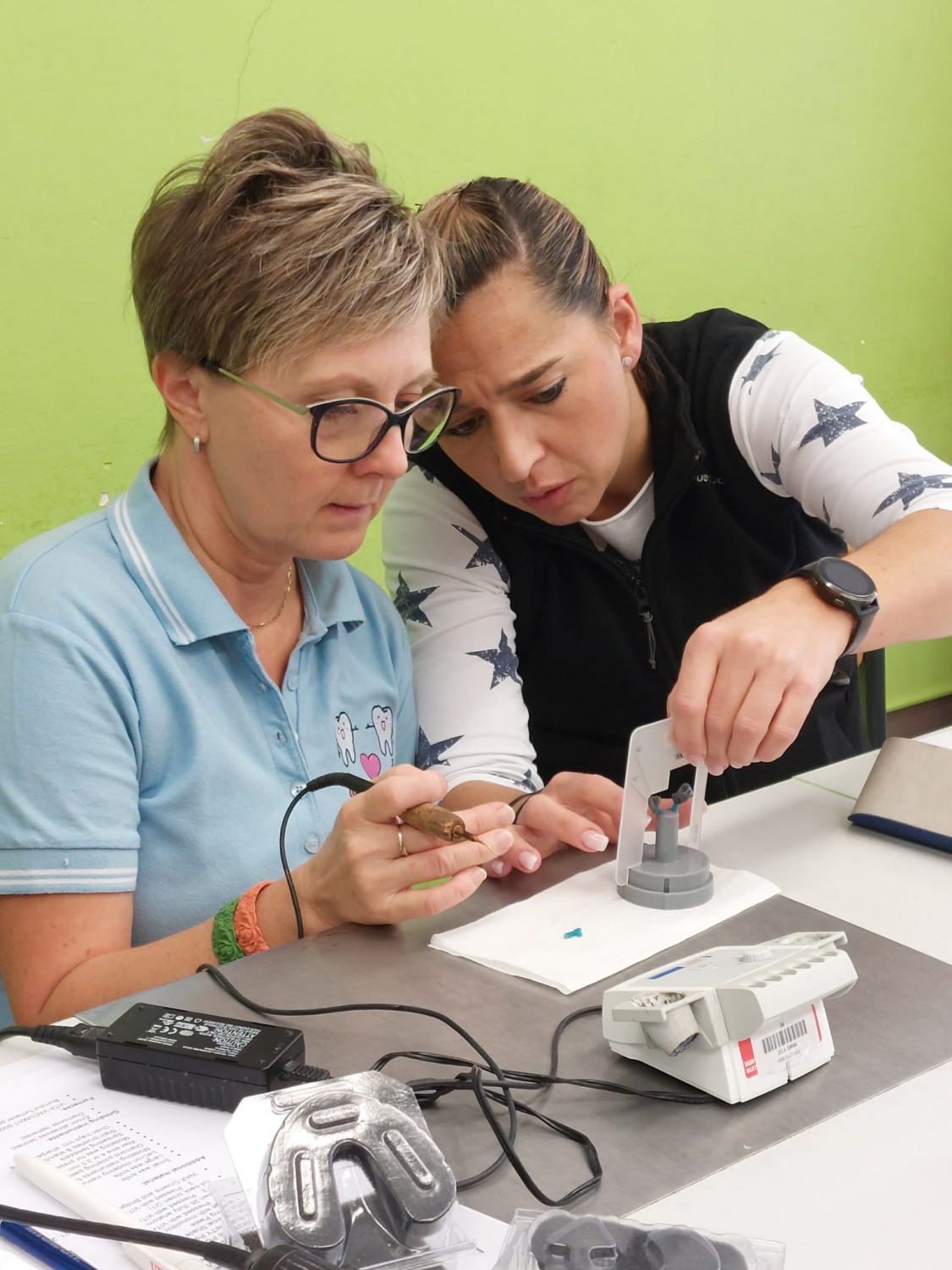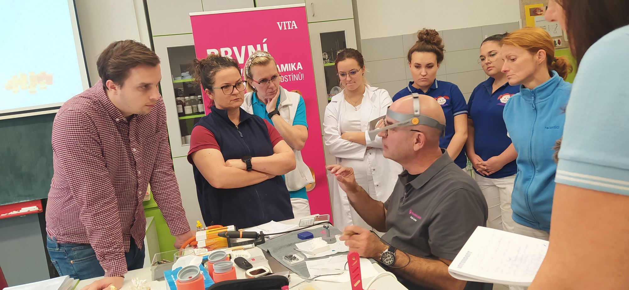 Tento rok vyučující zubních techniků rozhodně nezahálí a absolvují další školení v nových materiálech a technologiích. Tentokrát se jedná o presovanou celokeramiku Ambria s odborným školitelem panem Sanderem přímo z německé firmy VITA, které bylo opět možno zorganizovat díky programu Erasmus Plus. Školení se mohlo zúčastnit i pár dívek oboru Diplomovaný zubní technik z VOŠ. A líbí se nám to všem.