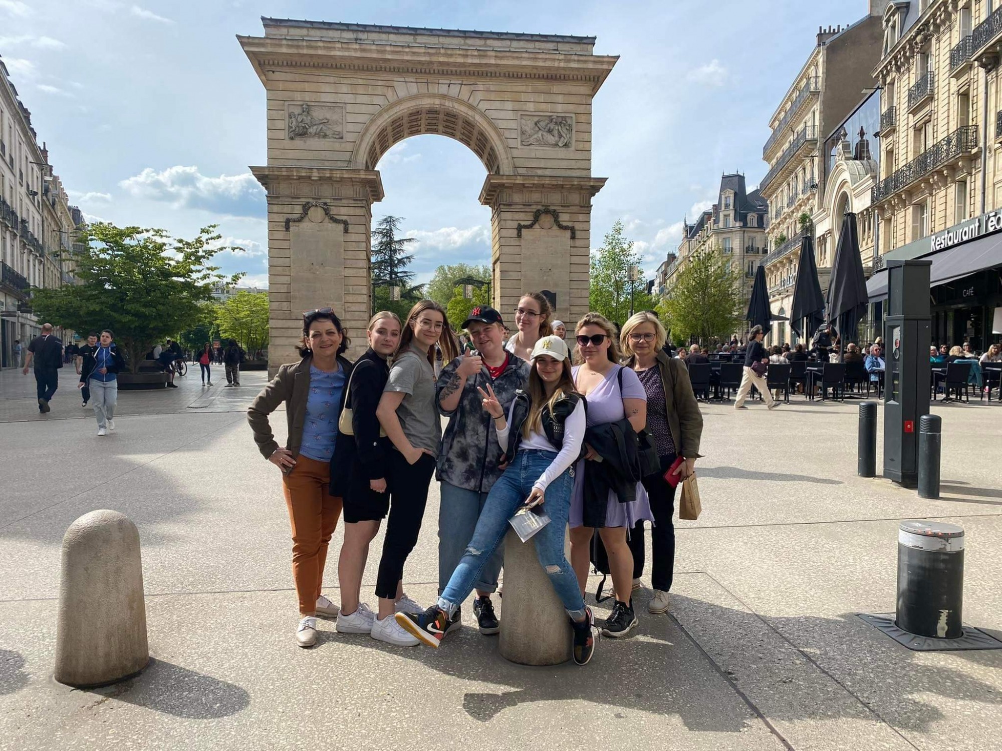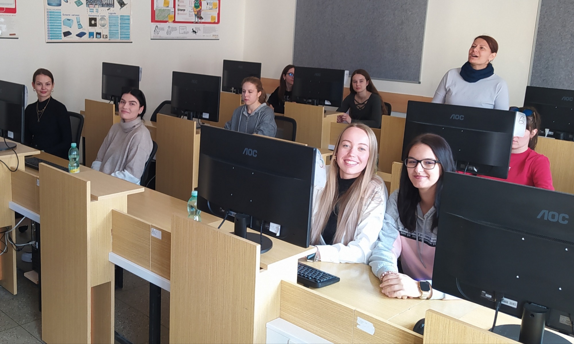 Naše stážistky po hodině angličtiny v dijonské škole, jsou spokojené, angličtina ( i francouzština) jim jde.