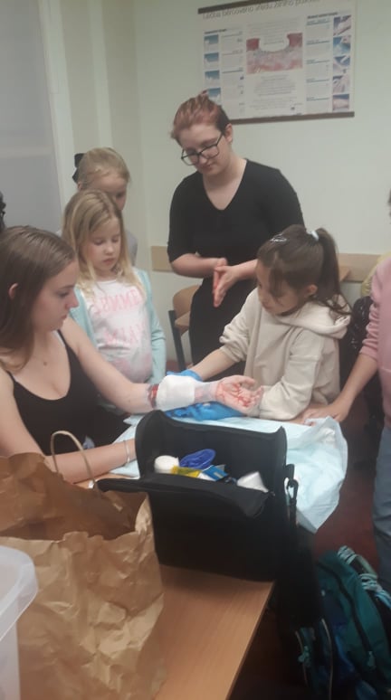 Dne 5. 5. 2022 nás navštívily děti ze zdravotnického kroužku pořádaného ZŠ Komenského v Nymburce. Žákyně ze třídy 2. A pro ně připravily autentickou situaci zranění a předvedly ukázkové ošetření. Děti si pak vyzkoušely resuscitaci na modelu a prohlédly si školu. Doufáme, že se jim návštěva naší školy líbila a opět přijdou. Mgr. Monika Veselá