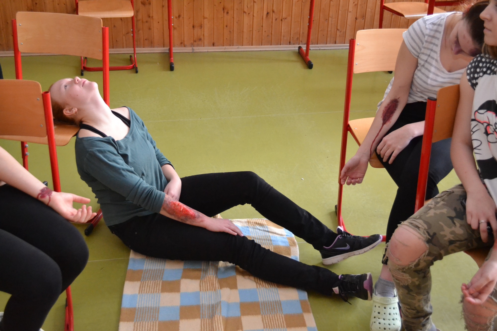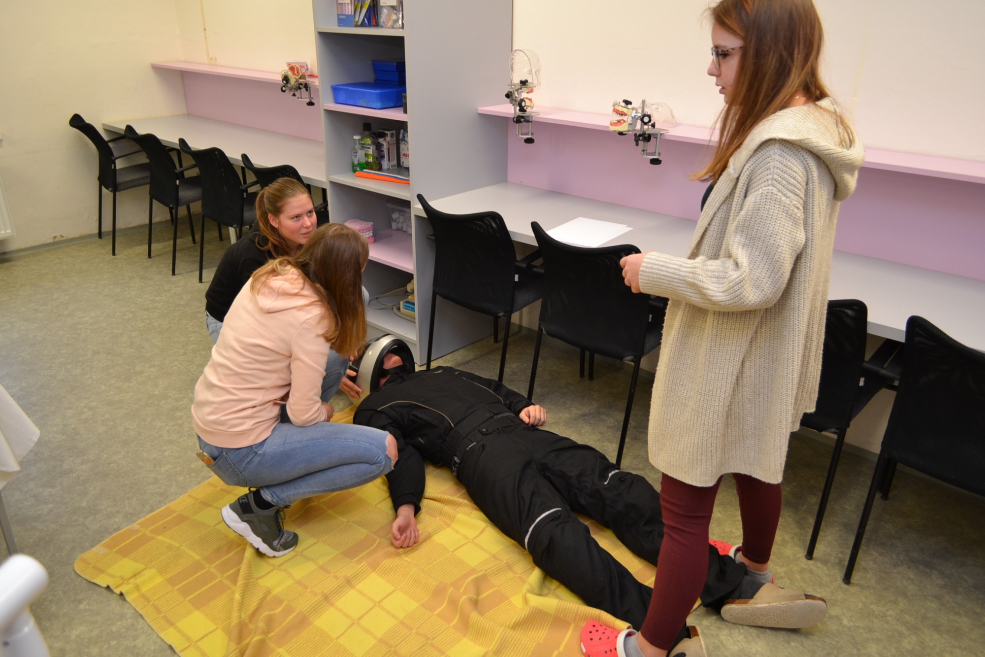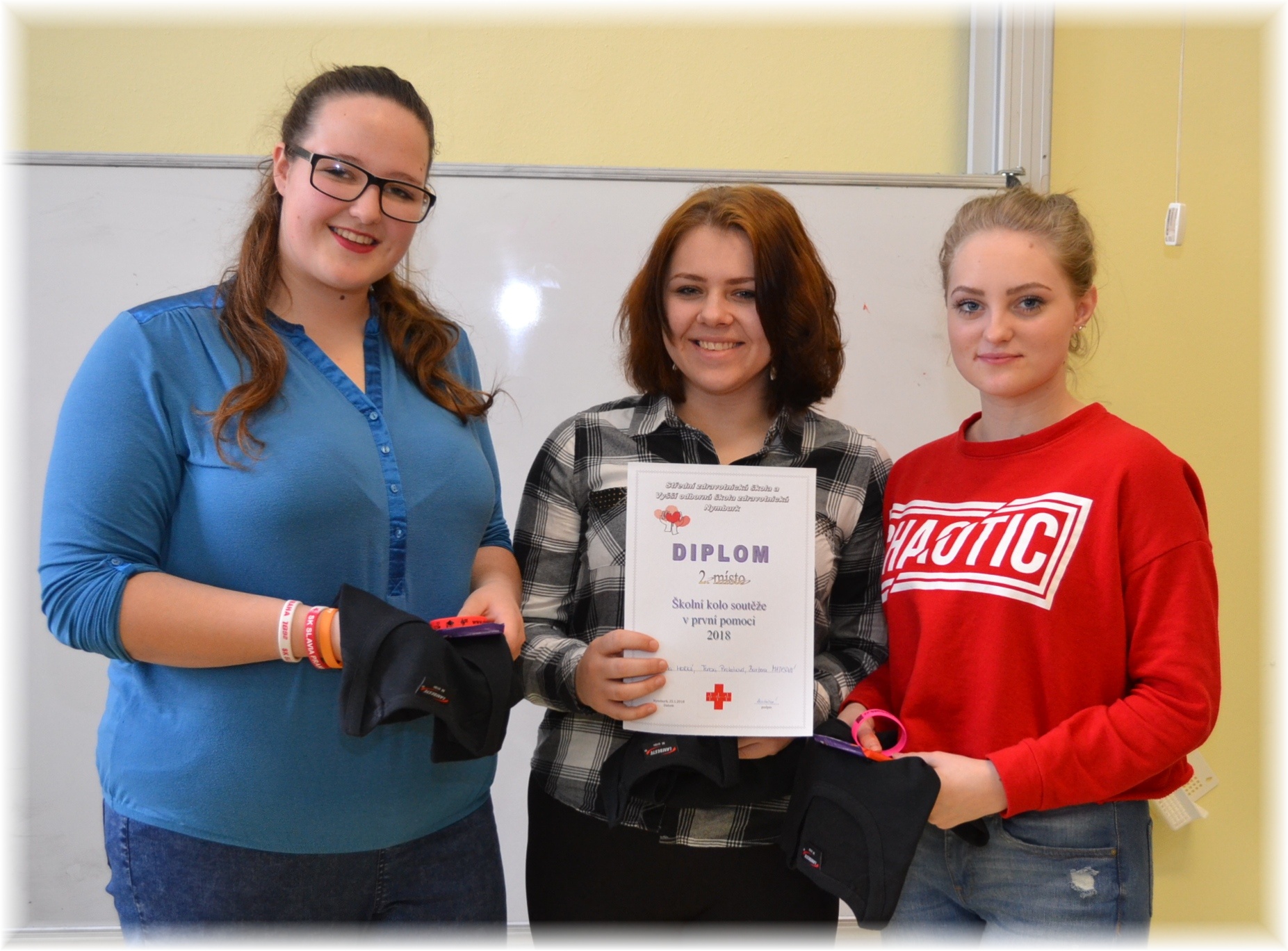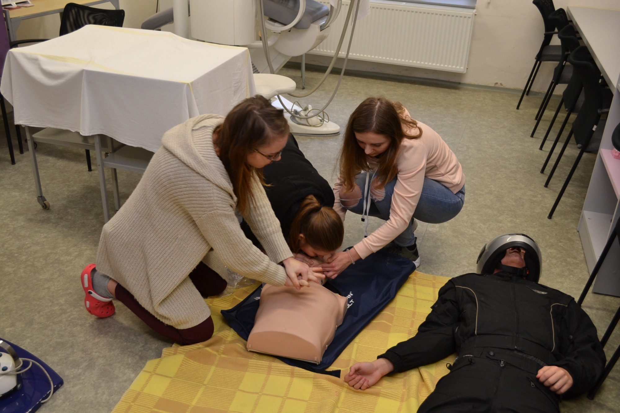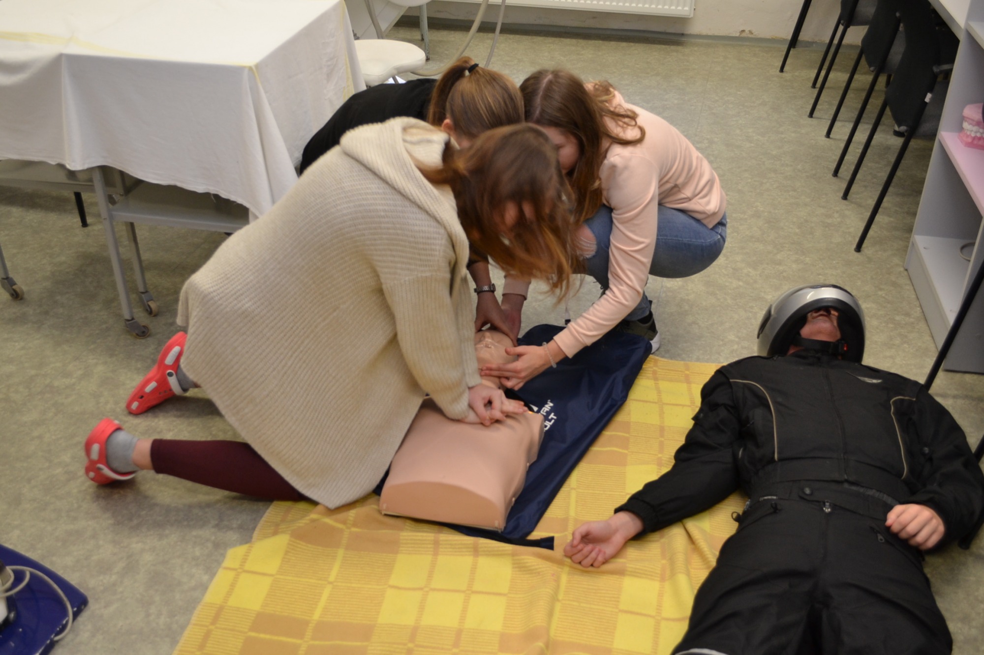 Dnes dopoledne (čtvrtek 25.1) probíhá školní kolo soutěže v první pomoci. Žáci prvních ročníků si na figurantech vyzkouší a prověří své znalosti z poskytnutí první pomoci při 5 různých situlacích jako je havárie autobusu s velkým počtem zdranění, nehoda motorkáře nebo infarkt...