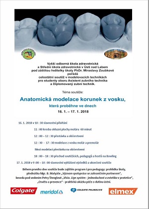 Ve dnech 16.a 17. ledna 2018 jsme se zúčastnili celostátní soutěže s mezinárodní účastí v kresbě a modelaci Ústecký denT, která je určena pro studenty oborů Zubní technik. Naši školu reprezentovaly dvě dívky, kterým tímto děkujeme a gratulujeme, neboť jejich účast byla více než úspěšná. Jejich nádherná umístění na "bedně" nám vynesla titul "ŠKOLA ROKU 2018". Rádi bychom vyzdvihli píli, kterou věnovaly přípravě na tento soutěžní den a výrazně tak podpořily svůj talent.