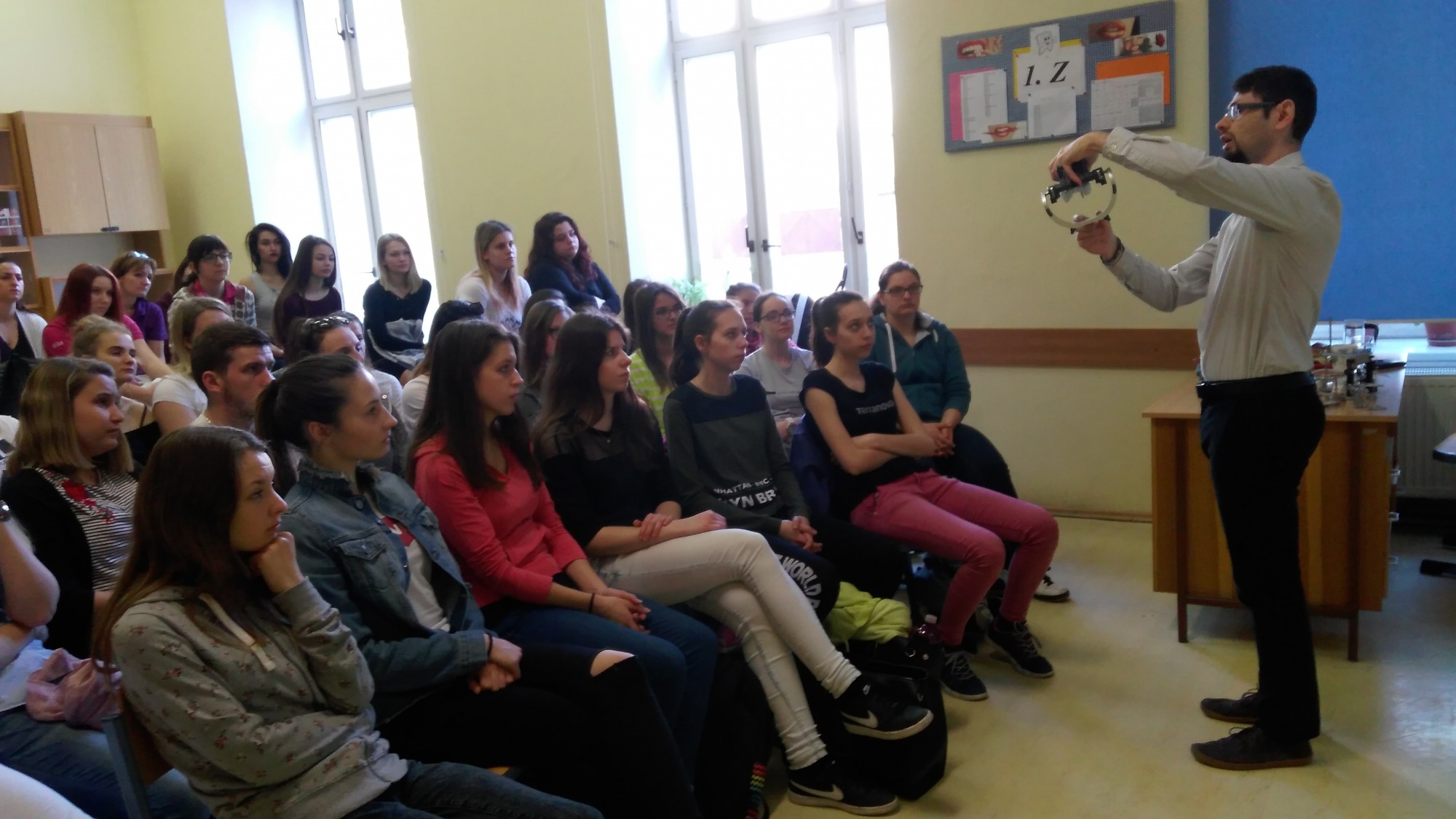 Dne 10. dubna 2018 naši školu navštívil pan Michal Koudelka, zástupce firmy WaH, aby svým osobitým a nadšeným způsobem vtáhl studenty i učitele zubní techniky do světa artikulačních teorií. Přednáška byla velmi pěkná a zajímavá a obohatila všechny zúčastněné o spoustu nových poznatků a jiné poznatky naopak připomněla a ujednotila. Panu Koudelkovi děkujeme!