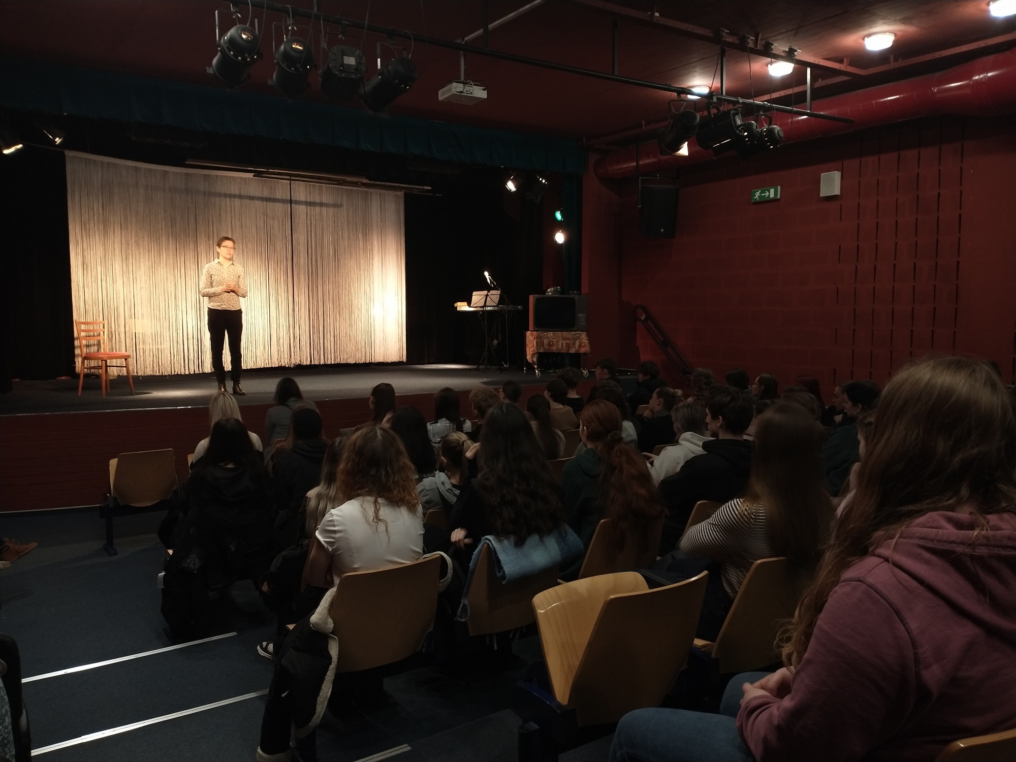 V pátek 29. 11. 2024 se žáci 4. L a 4. Z nechali přenést do atmosféry normalizace z pohledu běžných mladých lidí v představení Dusno, skupiny TisíciHRAn.