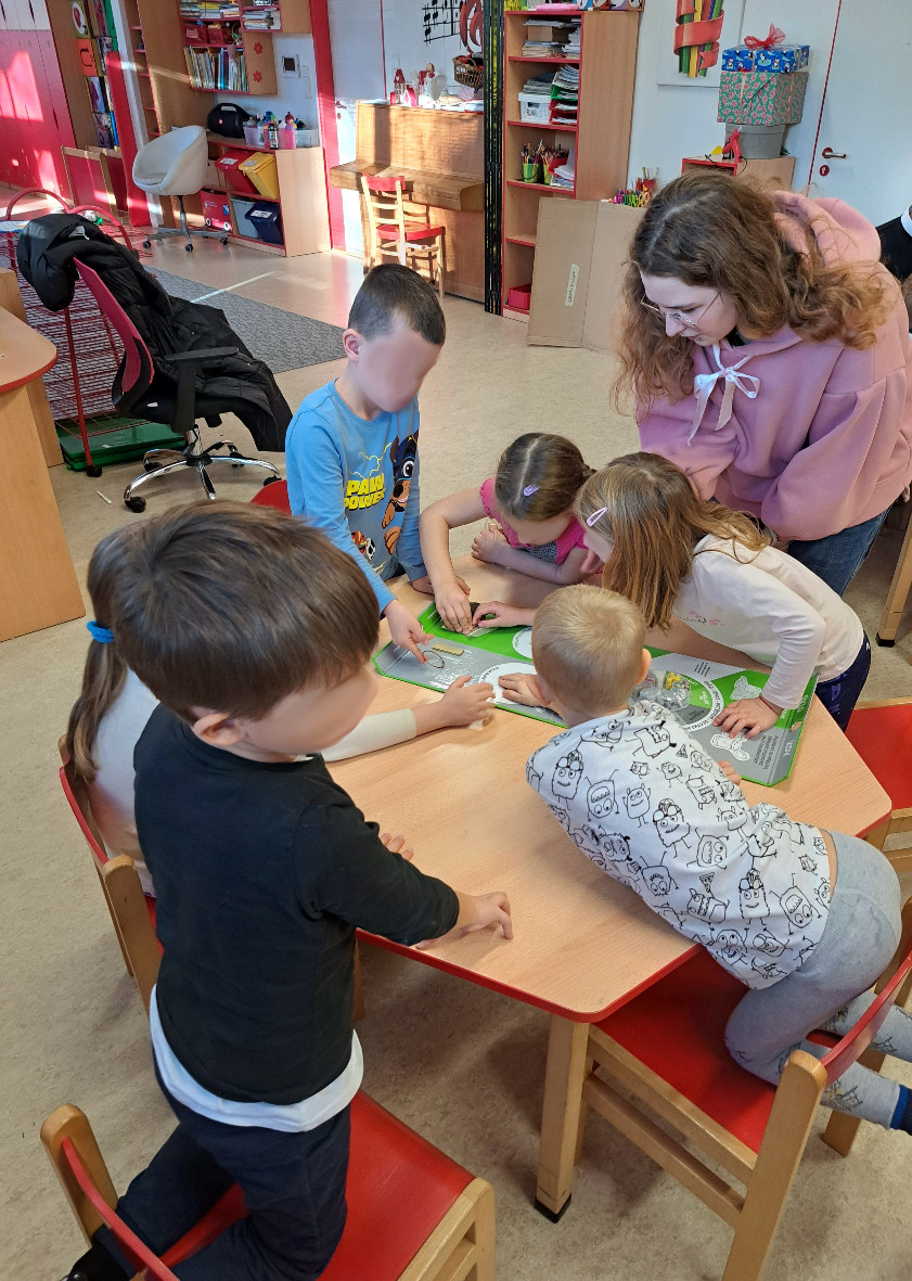 Ve čtvrtek 21. 11. a 28. 11. 2024 navštívily naše ekologické edukační týmy (žákyně a žáci 4L, 3L a 2L) 5 oddělení MŠ U pejska a kočičky v Nymburce. Tématem interaktivní lekce bylo třídění odpadu. Děti se učily pojmenovat druhy odpadu a " vyhodit" ho do správné barvy popelničky, zahrály si pohybovou eko hru a vybarvily omalovánku.