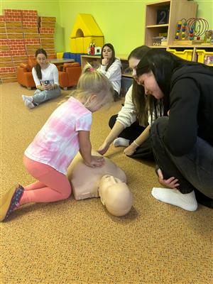 Dne 22. 11. 2024 žákyně druhého a třetího ročníku oboru praktická sestra v MŠ Všechlapy edukovaly děti o základech poskytování první pomoci.