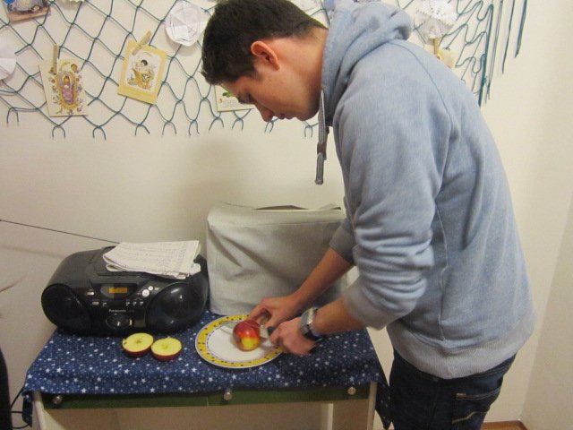 Chlapci ochutnali perníčky, rozkrajovali jablka, poslouchali české vánoční písně
