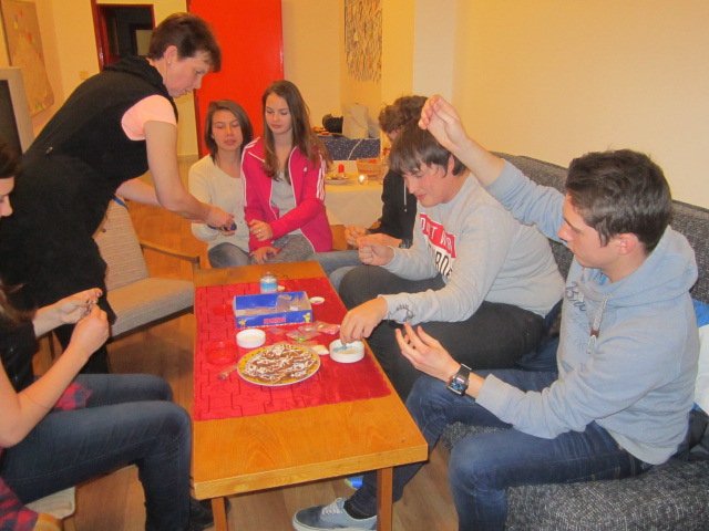 V úterý dne 8. 12. 2015 navštívili 3 chlapci z Francie domov mládeže v Nymburce. Protože dívky z 1. ročníku SZŠ měly za úkol zajistit jim program na odpoledne, zapojili jsme je do odpoledních zájmových činností domova.